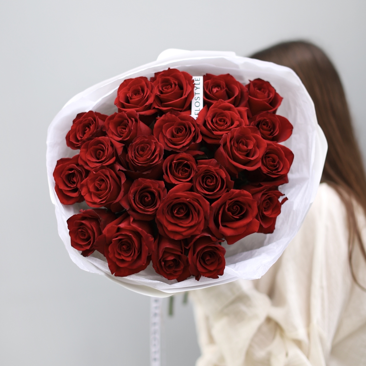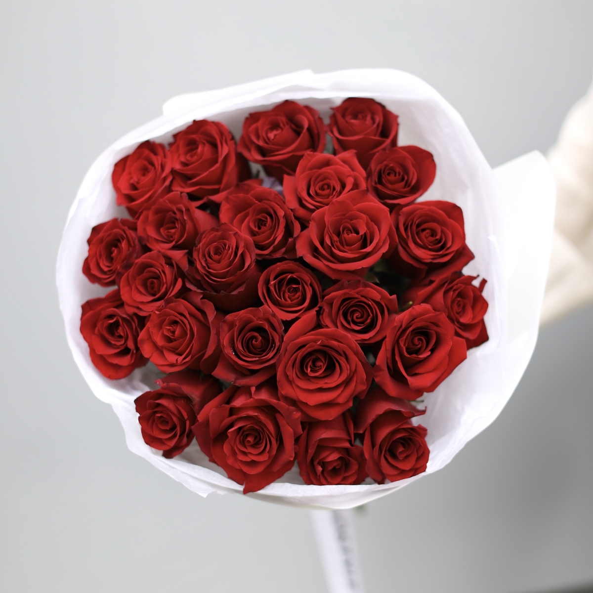 Состав: Роза Explorer - 25 шт, Тишью белая, Матовая пленка белая кругом
