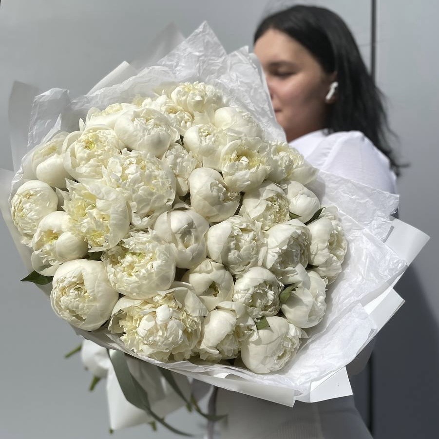 Состав: Пион White - 31 шт, Тишью белая, Матовая пленка белая углами
