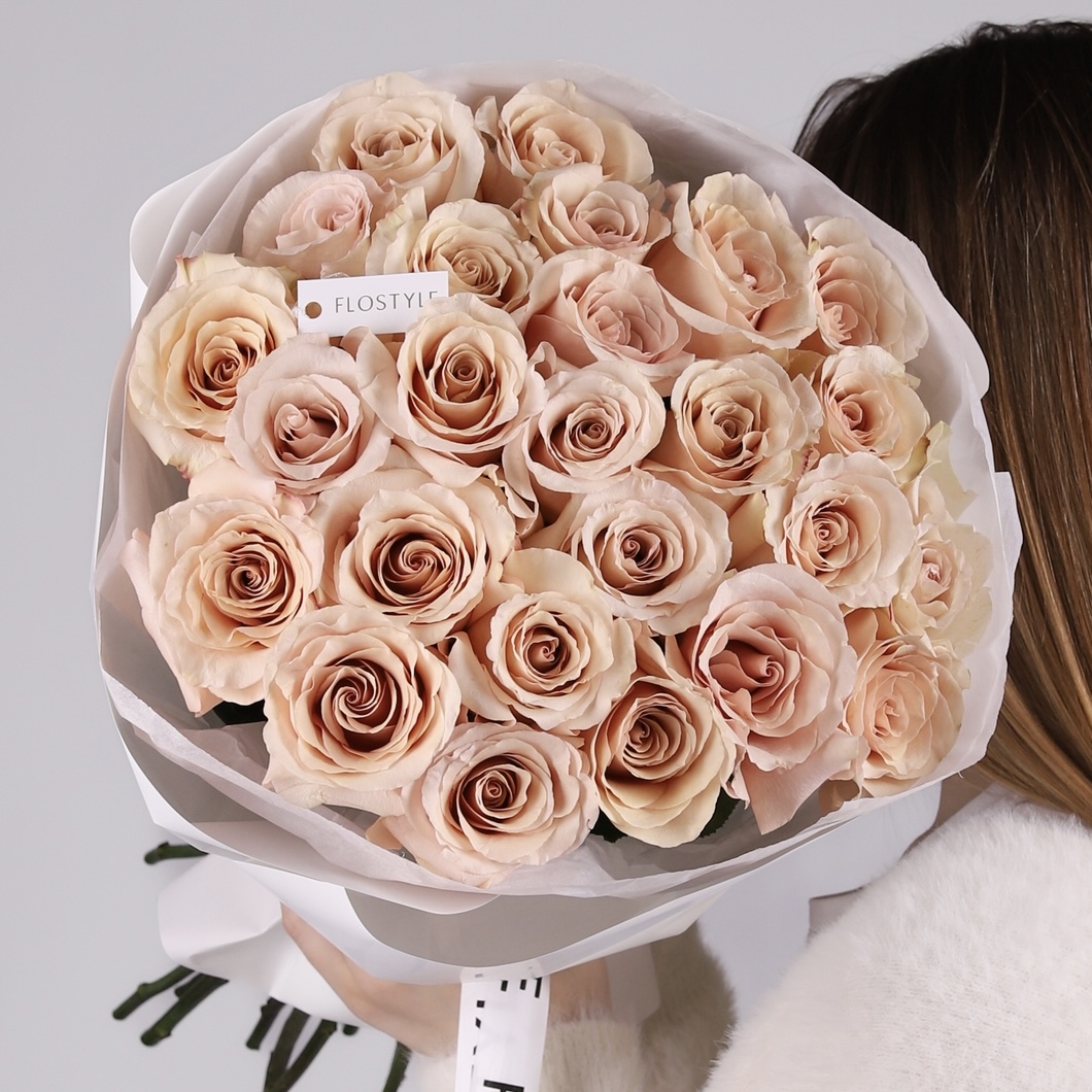 Состав: Роза Quicksand - 25 шт, Тишью белая, Матовая пленка белая кругом