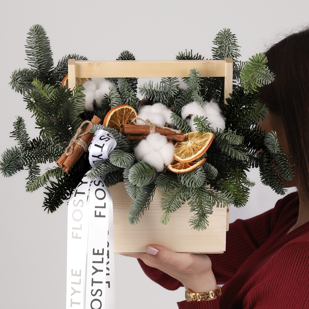 Зимняя композиция в ящике кашпо с датской елью model №479